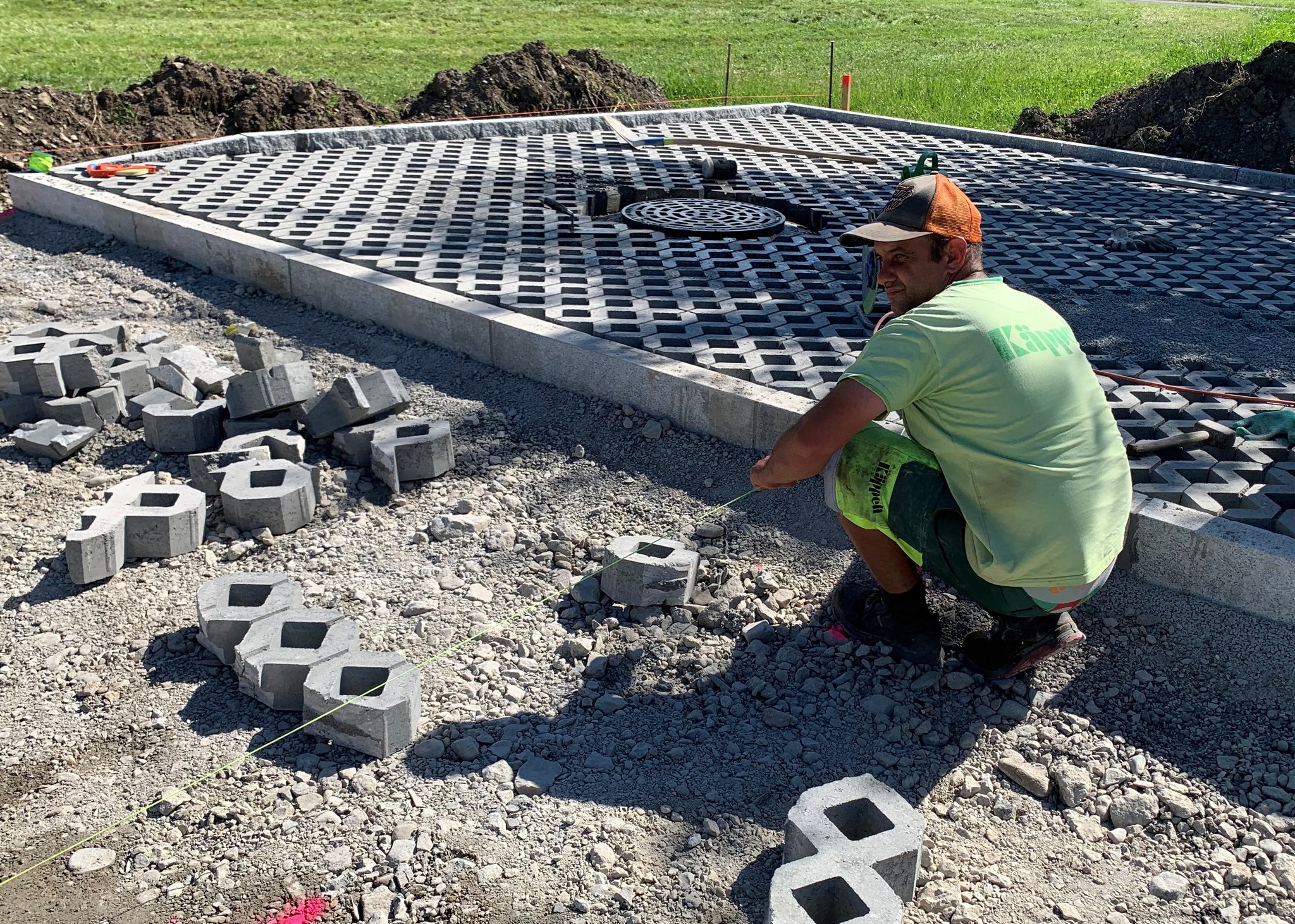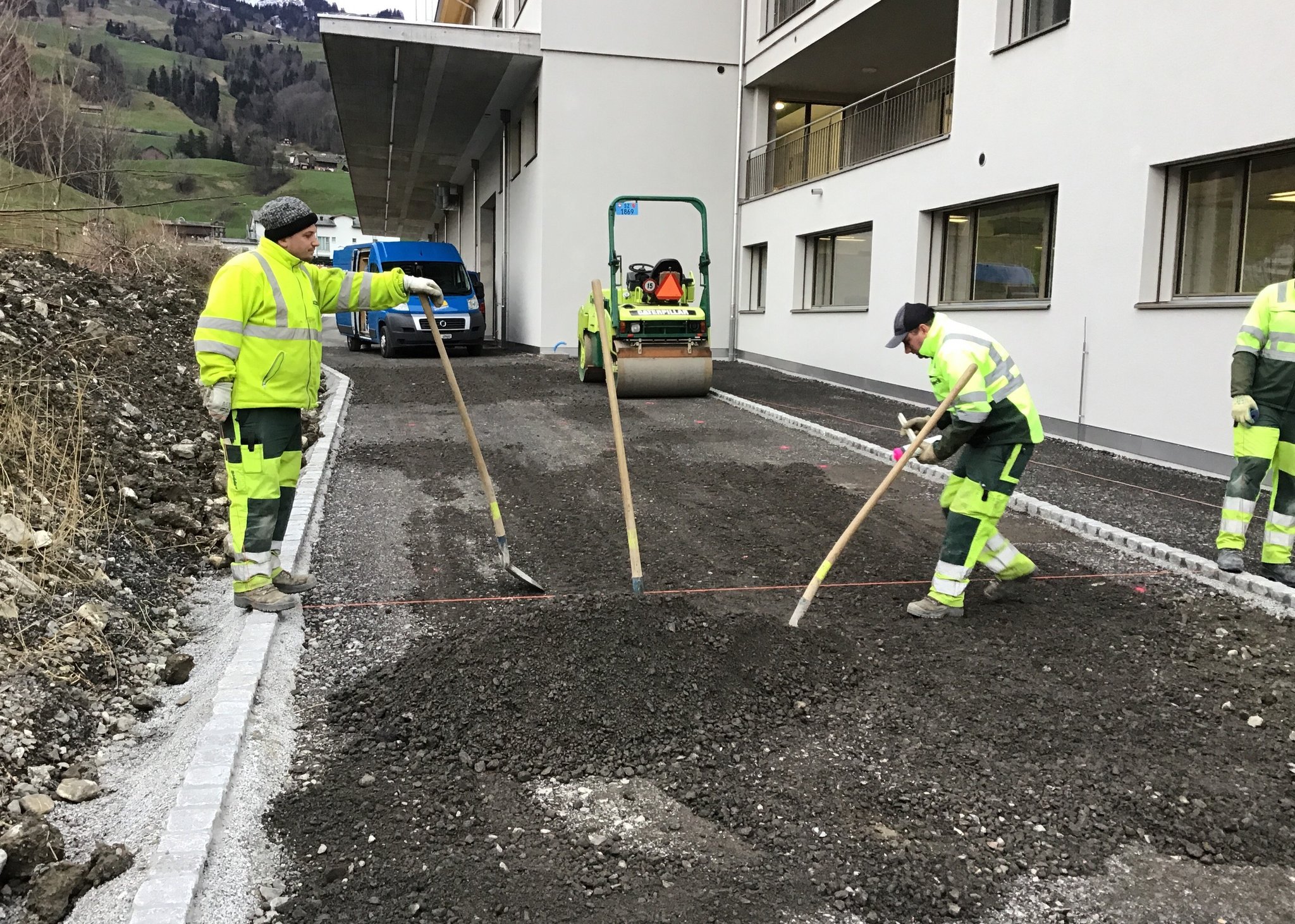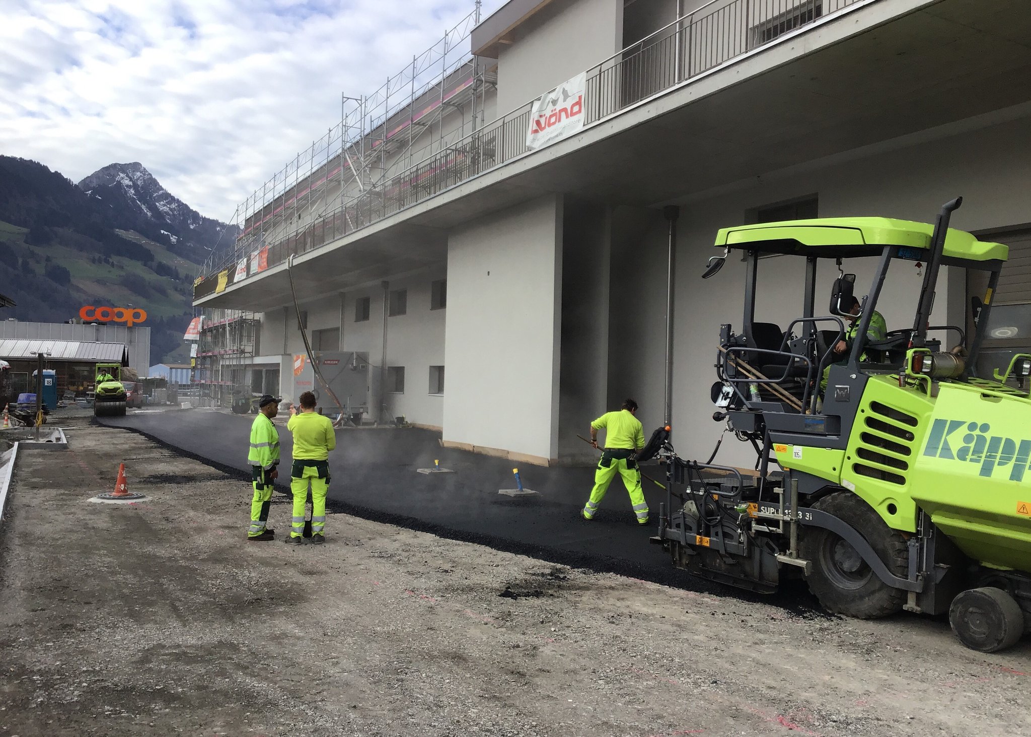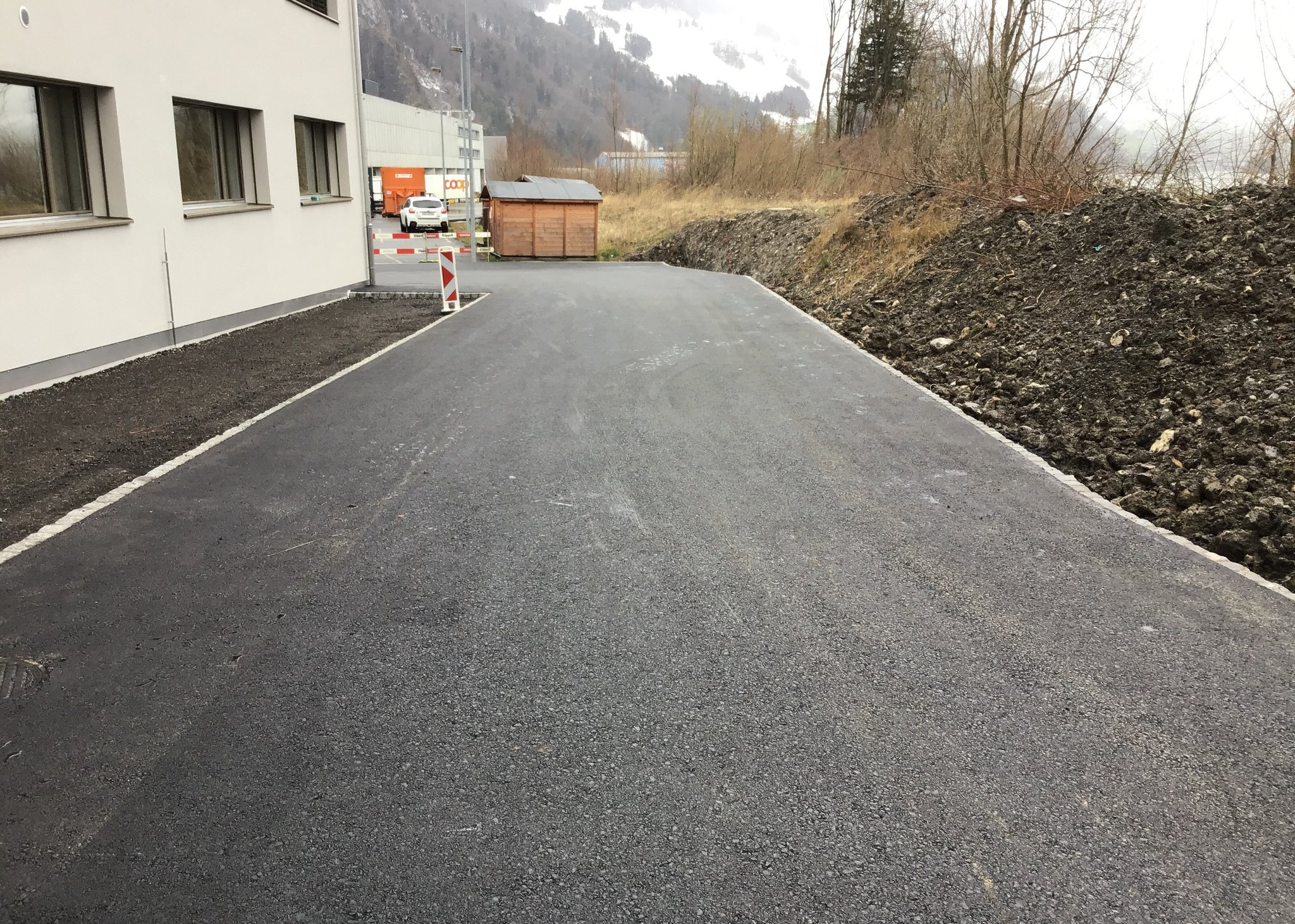Für die Schreinerei Schürpf GmbH durften wir im Industriequartier Steinbisli den Aushub und nun die Umgebung für ihren grossen Fabrik- und Gewerbebau ausführen.