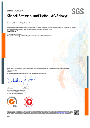 Die Zertifizierung umfasst Planung und Ausführung von Bauleistungen im Strassen- und Tiefbau.